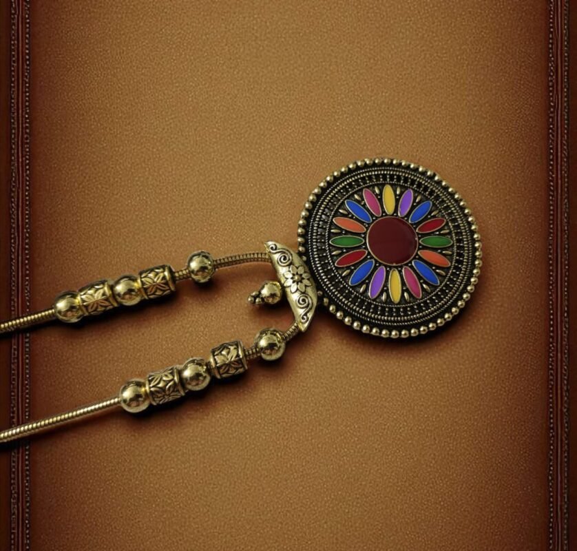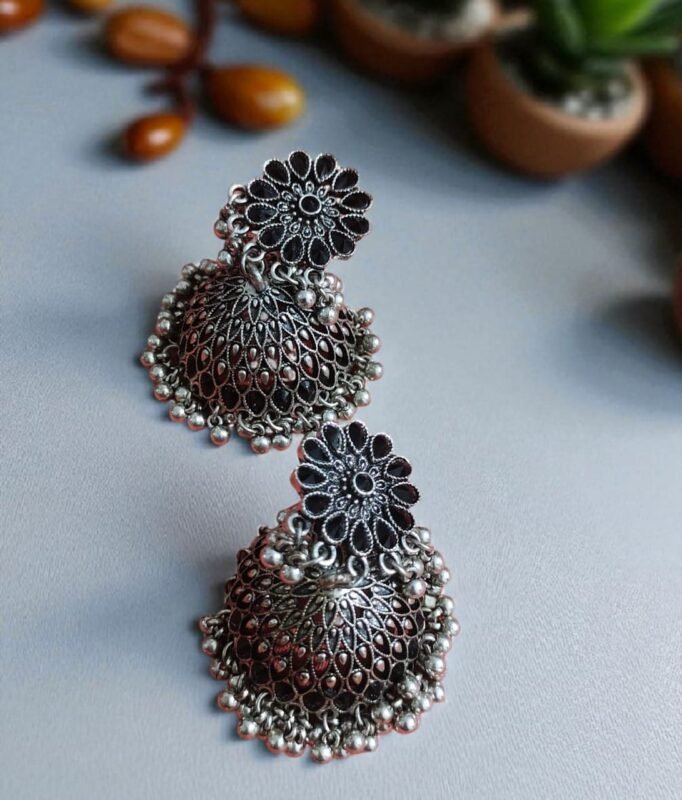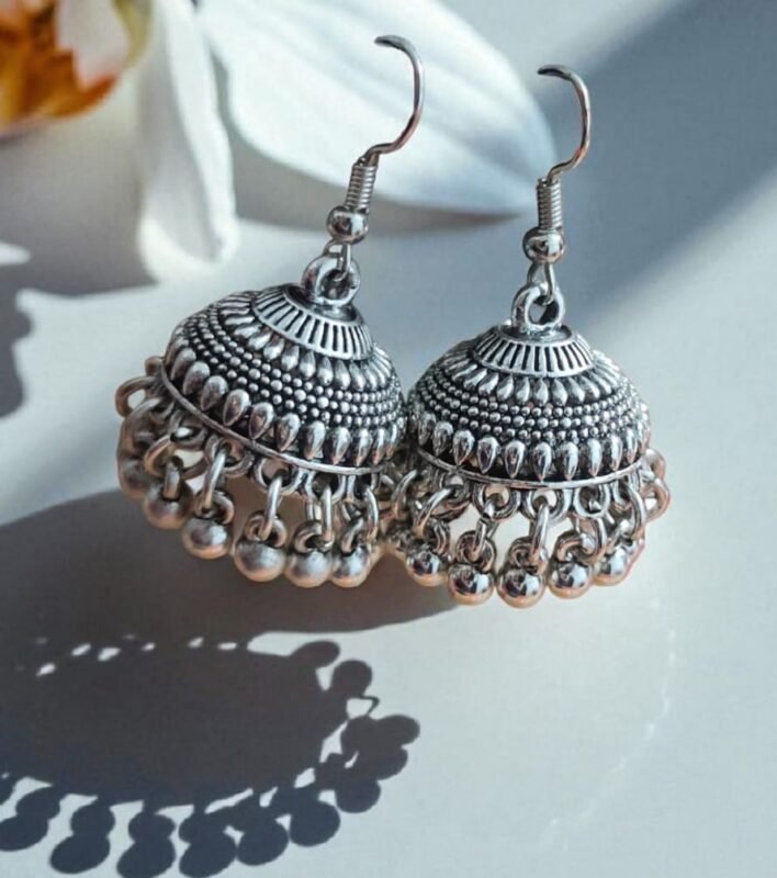 Chand Balis are characterized by their circular shape, often adorned with small discs or other decorative elements that hang from the hoop. The name "Chand Bali" translates to "moon earring" in English, which suits their crescent moon-like design. These earrings are typically made of silver or gold and are popular among women in the region for their elegance and cultural significance.